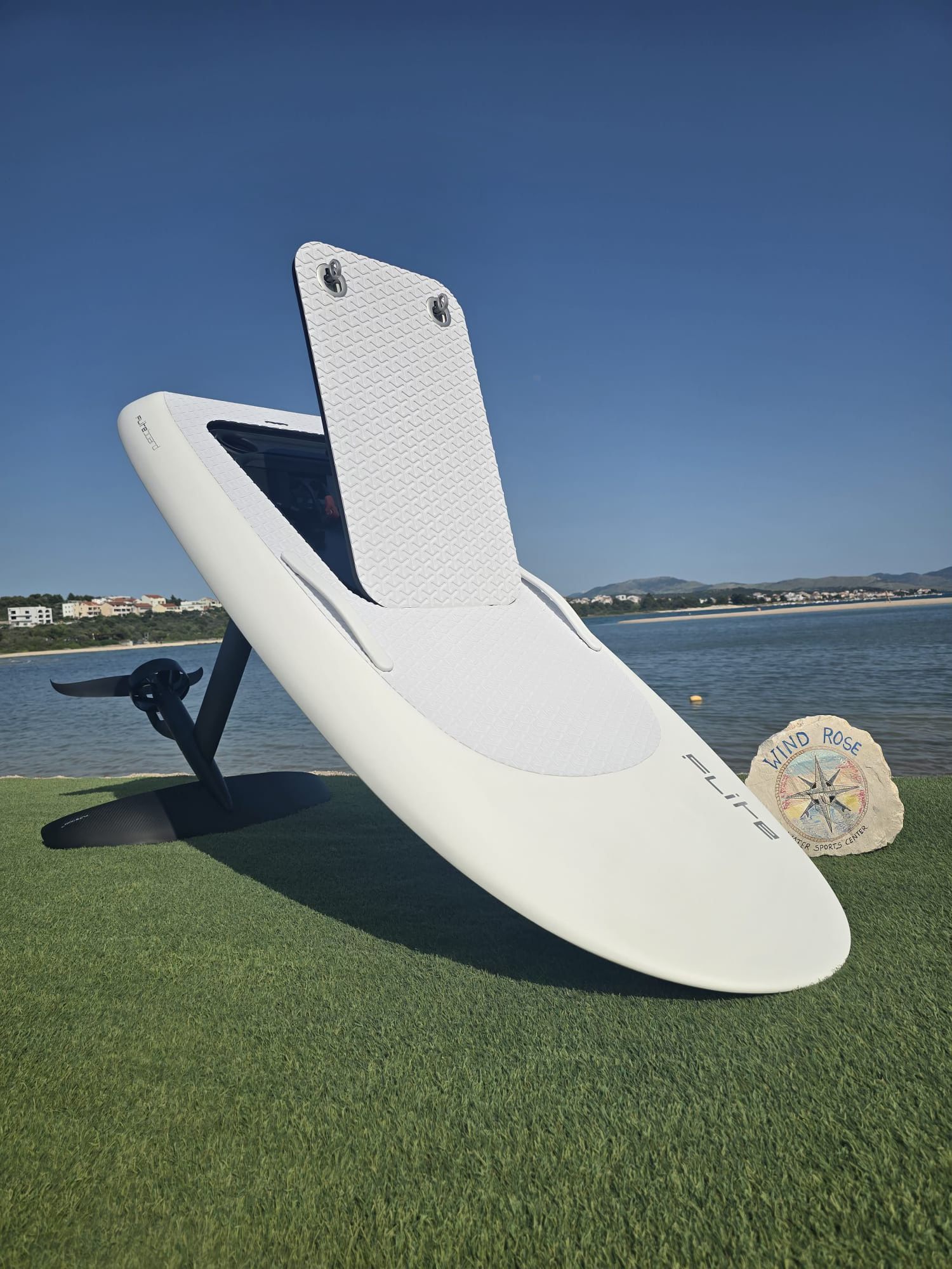 Say hello to the Flite eFoil — the board that flies above the sea. Silent. Smooth. Fast. Up to 50 km/h. Controlled with a wireless handheld remote. Stand, kneel, or sit — no waves needed. Just you and the water. After just one session, you’ll understand why this is the most exciting water experience of the summer. We’re proud to present the world-renowned Flite brand — now available exclusively at the Wind Rose Water Sports Center.